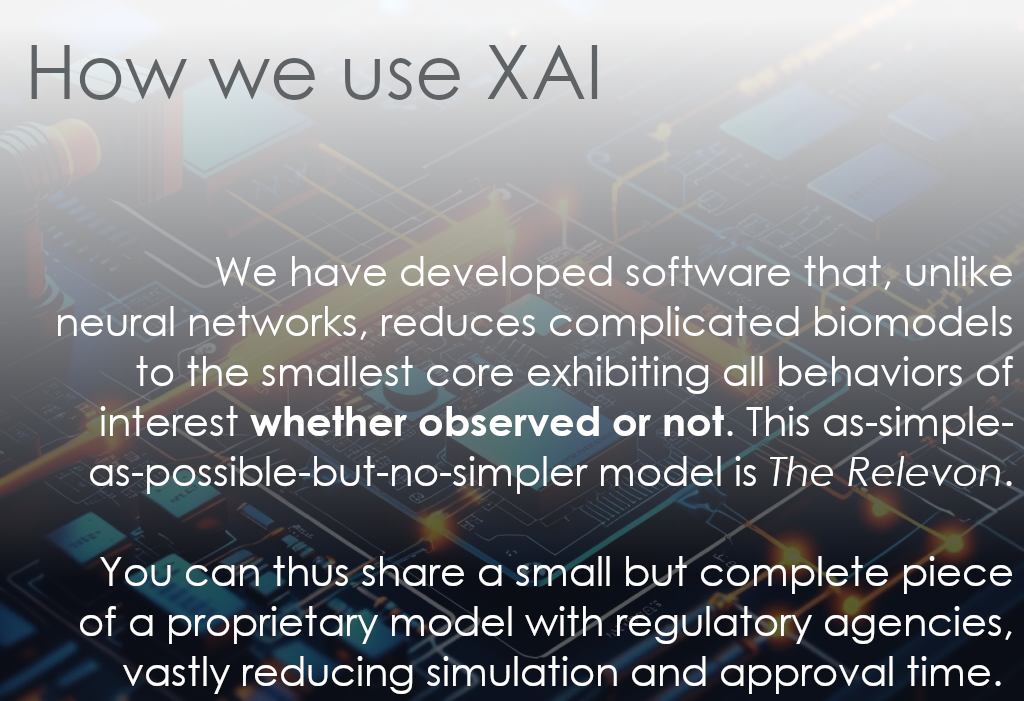 All models simplify some aspects of reality. Appropriate abstractions answer specific questions, and are "as simple as possible, but no simpler" to paraphrase Einstein. Effective science demands the right tools (which usually means using the right models). Cross Stream Bioanalytics pioneers Explainable AI (XAI) methods for precision modeling in Quantitative Systems Pharmacology (QSP).